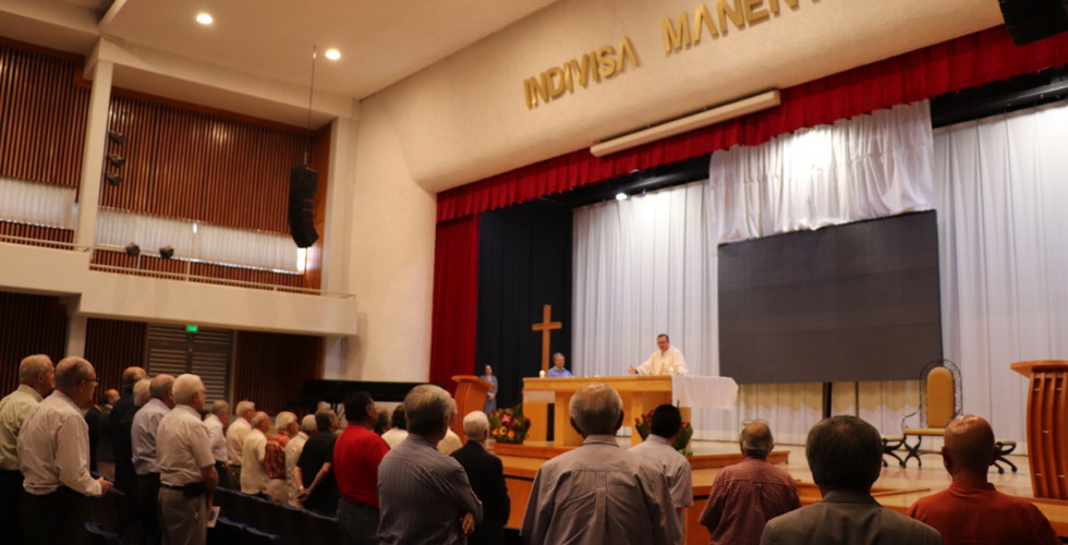 Con Alegría comenzamos nuestra convivencia Anual con una Misa Celebrada por el Pbro. Miguel Arcángel De Simone, Palabras del Presidente de la Asociación y la entrega de Reconocimientos a los que cumplían 71, 65, 60, 55, 50, 45, 40, 35, 30, 25 y 20 de haber salido de esta su casa, el Colegio Benavente, así como más regalos para los invitados, música y Karaoke.